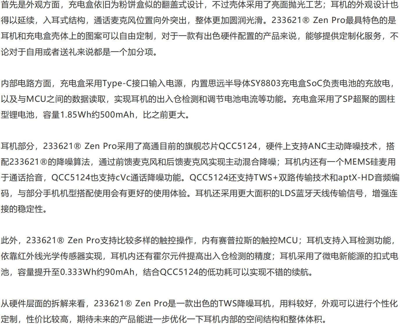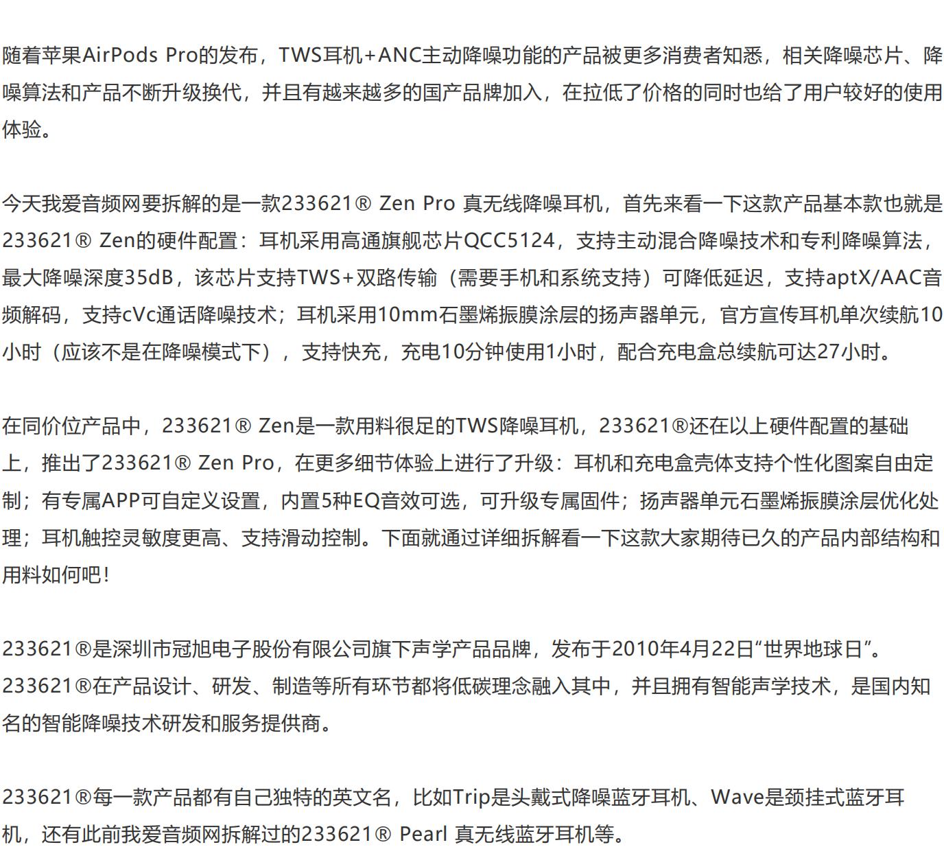 【轉(zhuǎn)載】我愛音頻網(wǎng)拆解報告:233621? Zen Pro 真無線降噪耳機